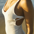 Confeccionado em lycra ecofriendly (90% poliamida e 10% elastano), o maiô proporciona elasticidade, suavidade e resistência. A cor off white textura transmite um estilo clássico e minimalista, ideal para quem valoriza peças versáteis e atemporais.